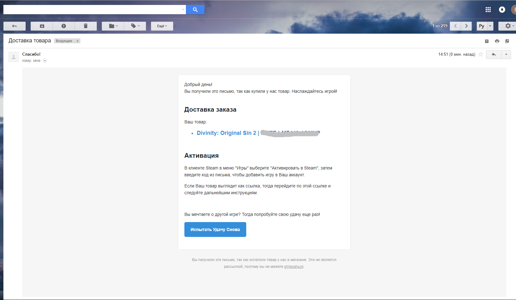 x30 шанс получения сразу 3 ключей от таких игр: PUBG, GTA V, MONSTER HUNTER: WORLD, FIFA 19, Battlefield™ V, Call of Duty: Black Ops 4, Overwatch, Sea of Thieves, Assassin's Creed® Origins, Hitman 2, No Man's Sky, The Crew 2, Far Cry 5, Call of Duty: WWII, Resident Evil 7, Watch Dogs 2, MAFIA III, DOOM, Dark Souls 3, CS:GO Prime Status Upgrade, Rust, The Witcher 3, Fallout 4, Just Cause 3, DayZ, TES V: Skyrim, Football Manager 2023, NBA 2K23, PRO EVOLUTION SOCCER 2019 и другие...